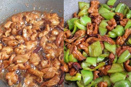 步骤:把洗干净的猪大肠放进煮沸的热水中煮熟后拿出,切成若干段,待锅热后,倒花生油。接着把青椒和生姜放下去翻滚几下,再把猪大肠一并倒下去。待炒至变成金黄色后,再把洋葱倒下去,放适量的盐和酱油。等到5到7分钟后,味道鲜美的青椒炒猪大肠便可出锅啦。