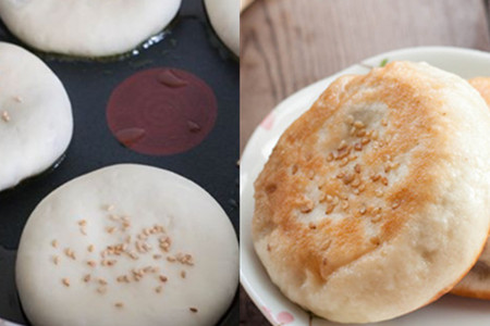 七、电饼铛刷适量油,将馅饼生坯放进去。油煎到两面金黄以后,在电饼铛内洒适量水,盖上盖子焖到水干。喷香的牛肉馅饼就做好了。
