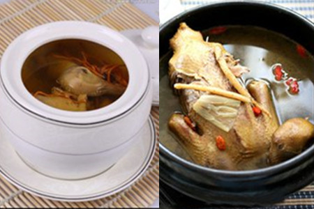 第四步,取一个砂锅,放入鸽子的肉并加入约三分之二的水放在灶火上烧开。之所以用砂锅是因为这样煲出来的汤比较有利于养生,至于灶火,有条件的话尽量用炉火而不是煤气。