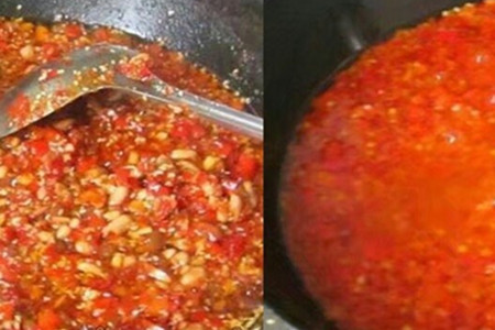 接下来跟着小编一起来学习辣椒酱的制作方法吧!首先,我们需要的原材料有新鲜的红辣椒、熟芝麻、熟花生、盐、糖、菜籽油。首先把辣椒切碎,把花生米也弄碎。锅里加入油,等油烧热了之后把切碎的新鲜辣椒倒入油锅里进行翻炒。等到锅里的油冒泡了之后,加入适量的盐再用小火慢慢的炒二十分钟左右,要不停的翻炒否则会粘锅的。