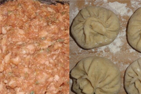 接着就是肉馅的制作了,将五花肉剁成肉沫,皮冻、葱、姜也切成细末,将所有的材料和调味料全部混合在一起沿着一个方向搅拌均匀。这样肉馅的制作也完成了。