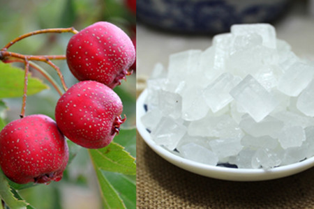 首先,当然是准备我们的材料了。这一步需要我们挑选上好的山楂还有冰糖作为原始材料。接下来将山楂从中间一刀切开,把山楂的核去掉,再用长竹签把两瓣山楂合二为一,尽量穿得好看一点,这是为了美观,而去核这一步是为了我们自己吃起来方便。至于冰糖,将大块的冰糖敲碎成较小的块状即可,这是为了冰糖在之后的步骤更快的融化。