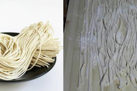怎样才能做出一碗美味的面条呢?重要的一步是制作面块,因为面块的软硬程度是决定面条是否筋道的重要标准。制作时我们需要用冷水和面,因为在这种状态下面粉不会糊化,更利于保护面条劲道的口感,和完面后用刀切或者用其他机械压出面条即可。