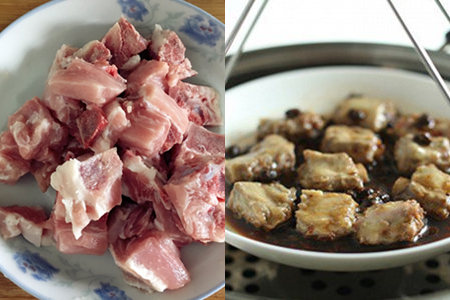第二步:排骨清洗干净,一茶匙的盐,豆豉,蒜蓉,姜末,一茶匙的油,搅拌均匀。