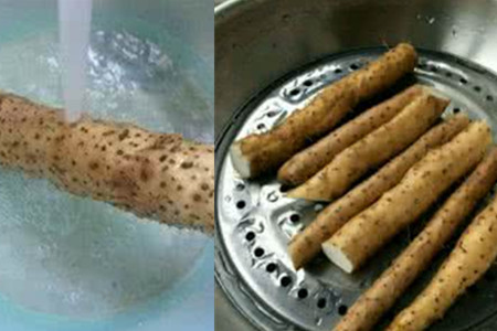 之所以带皮蒸山药,一是蒸熟的山药更好剥皮,二是这样可以有效防止山药引发的手痒情况。