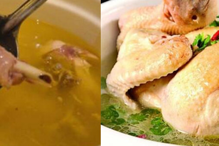 第一步,将整鸡洗干净后,用热水烫掉血水,如果家中的炖锅太小,无法放下整只鸡,建议可以将整只鸡切成小块,还是要将鸡块烫掉血水。将鸡肉先烫掉一遍血水,这样是为了煮出来的汤水没有杂质,颜色比较清澈。
