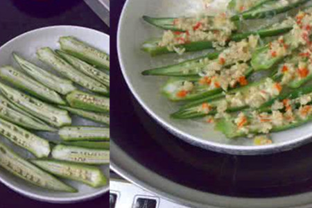 蒜末粉丝蒸秋葵。