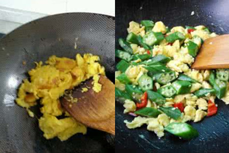 秋葵炒鸡蛋。