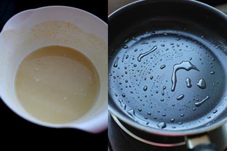 三、平底锅先不要开火,用刷子在锅底下涂上薄薄的一层油。