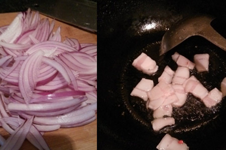 第二步,将洋葱去皮,切成细丝。这时要注意的事情是因为洋葱的气味比较熏,所以建议将切洋葱的刀沾一下水,这样就不会太熏到自己了。