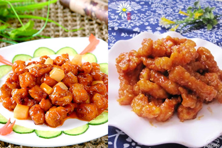 三道菜不同之处在于糖醋里脊比较大醋的味道,锅包肉的调味料里采用的是番茄酱而不是糖醋,菠萝咕噜肉采用的是白醋加番茄酱。三道菜都是经过油炸过的。【女物原创未经允许,谢绝转载!】