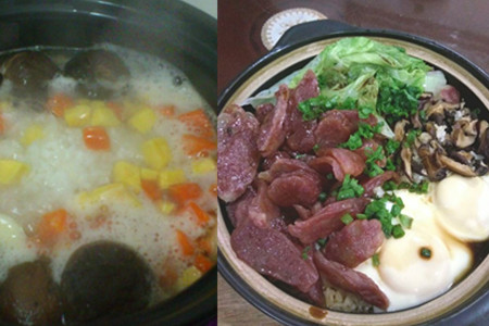 第五步:等待米饭已差不多八九分熟时,放入腊肠,继续焖煮直至饭完全熟。注意关火后十分钟再揭开盖子。喜欢吃青菜的,可以另起一个锅用蒜蓉、少许盐,用大火水煮青菜,将青菜放入饭中,可以继续盖住盖子,等青菜与煲仔饭味道相融。这样能让人胃口大开的腊肠煲仔饭就完成啦!【女物原创未经允许,谢绝转载!】