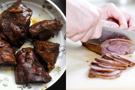 既有的事实我们无法改变,但是可以通过一些特别的方法来巧妙地克服它。对于这道菜也是一样,可以通过改变切的方式来化解肉筋所带来的障碍。下面便来介绍两种切这种美食的方法。