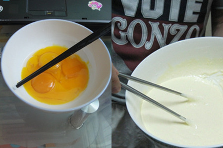 先在碗里面打入四个鸡蛋,只要蛋黄不要蛋清,然后加入100克的白砂糖,绕着一个方向不停地搅拌,大约搅拌5分钟就可以了。之后将500克的纯牛奶煮开,放凉之后再加入之前搅拌好的蛋糊。之后将牛奶和蛋糊混合搅拌,搅拌均匀之后倒入冰淇淋模子并冷冻就可以了。【女物原创未经允许,谢绝转载!】