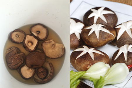 二、首先把干香菇提前浸泡一夜,等香菇泡发以后清洗干净,表面切花备用。切花不仅让成品好看,还可以使香菇尽快入味。把海带清洗干净以后浸泡四个小时左右,切成五厘米左右长短。