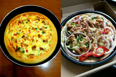鸡肉切成一片片后,要提前用盐和胡椒粉腌制,大概腌制八分钟到十分钟,就可以放入锅里爆炒。把面团揉成饼状,再戳上一些孔,在面饼上刷上一层橄榄油。现在可以自己制作披萨的酱,大家可以选择沙拉酱以及番茄酱,喜欢乳酪的可以加入一些。把所有配料加入面饼上就能放入烤箱里烤了,配料要一层一层的放,这样会比较好吃,也比较好看。