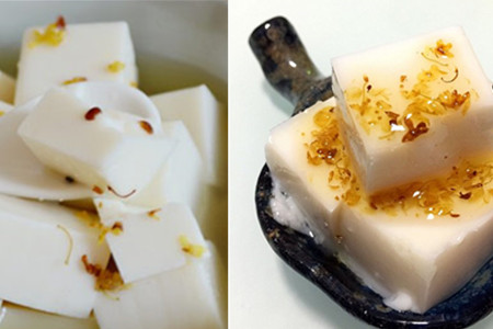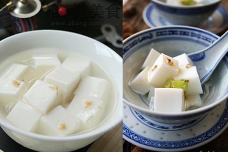 这是一道非常有名的菜品,虽然名字里带有“豆”字,也包含“豆腐”这一个词语,但是它的制作材料却和大豆没有丝毫的联系。从它名字的另一部分便可看出,这道菜的主要制作材料是杏仁。这种食材和其他的蔬菜类或者水果类都不太一样,它并不是成熟的个体,而是一直植物的种子部分。由杏仁制作而成的这道菜口感滑嫩,可谓是入口即化。
