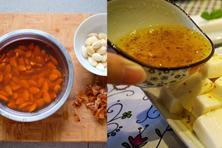 那么,这一道既清凉又滑嫩的甜点是通过哪几个步骤制作而成的呢?下面便来一一介绍它的具体制作步骤。首先便是准备做这道甜点所需要的全部材料。其中主要包括甜杏仁六十克左右,冰糖十五克,清水二百五十毫升,琼脂三到四克,牛奶二百五十毫升,白糖十五克,水果一个,糖桂花少许。由于牛奶的保质时间不是很长,所以要选新鲜的来使用。