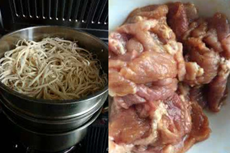 2、在蒸锅中倒入适当的水,在蒸笼上铺上一层纱布。把买回来的面条放在蒸锅里,大火蒸上十五分钟左右。