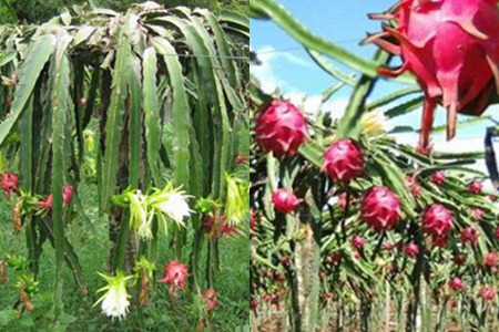 有的人以为火龙果是长在火龙果树顶的果实,类似于凤梨的生长形式。实则不然,火龙果在成熟的时候会垂下来,在一枝一枝的细小树枝的上面长的便是火龙果了。一枝的树干上面可以长大约4到5颗的火龙果,因此,火龙果树在成熟的时候是非常的好看的。
