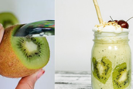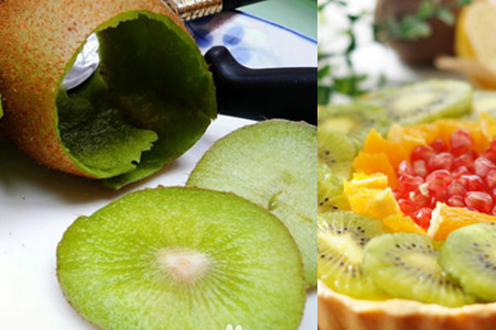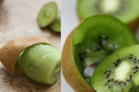 小妙招之一:将猕猴桃洗干净后,切掉头尾部分,注意不要去掉太多,避免造成不必要的浪费。取一个小勺子贴近猕猴桃边缘,将果肉均匀取出,即可得到完整的果肉。