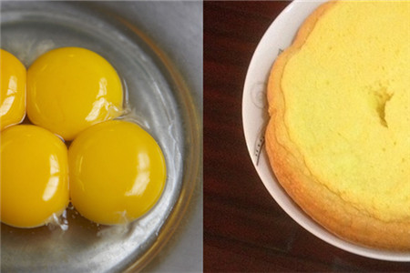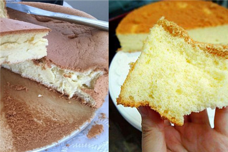 不蓬松的海绵蛋糕与制作成功的海绵蛋糕对比