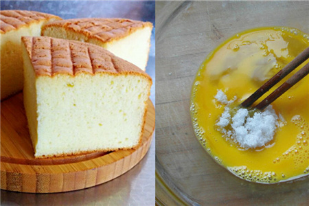 另外还需选用稳定性较好、颗粒较密的蔗糖,糖浆受热不稳定,因此不选用。另外海绵蛋糕有分为半蛋的和全蛋的。半蛋的海绵蛋糕只用鸡蛋的蛋液部分不用蛋黄。由于油脂会消去蛋糕本身的起泡,所以海绵蛋糕要求油脂含量较少。