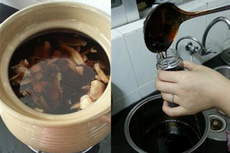五、将三次熬出的药汤混合在一起,继续小火慢煲两个小时,用四层纯棉纱布过滤渣滓以后继续小火慢熬,当药汤看起来略微浓稠的时候加入红糖。这个时候一定要注意不同的搅动,防止煮糊。