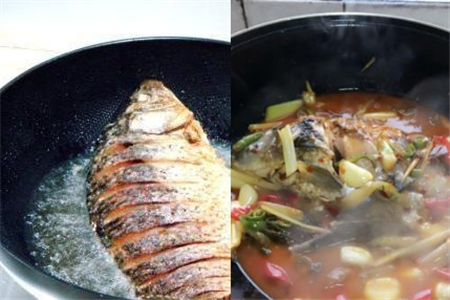 在油锅里将鲤鱼的两面煎至变色,就可以捞出来了。煎的时间不要太长,会让鱼肉变老。