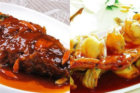 将热腾腾的胡萝卜丝酱汁淋在烧好的鲤鱼身上,可以再放少量的生菜或者小葱末,这道新式的糖醋鲤鱼就大功告成啦!