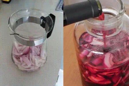 但是红酒的量不能太多,要稍微留点空余的地方。把瓶盖密封之后,把瓶子放在阴凉的地方放置一到两周。再将玻璃瓶里的洋葱去除,把红酒放入冰箱里。想要喝的时候,可以随时从冰箱取出饮用。每天可以饮用一到两次,但是每次饮用要控制量。不喝酒的人可以加些开水来稀释红酒,或者比较喜欢喝甜的,可以加些蜂蜜。【女物原创未经允许,谢绝转载!】