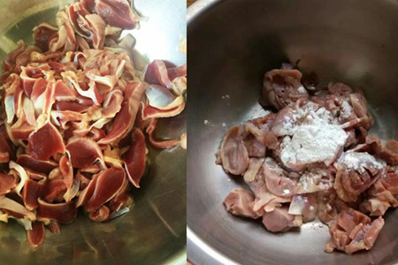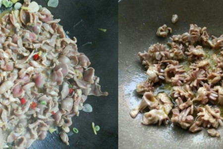 接下来要介绍的是爆炒鸡胗的做法。首先我们需要准备的原材料有鸡胗、干辣椒、花椒、盐、鸡精、泡椒、泡姜、芹菜、蒜、尖椒。将鸡胗清洗干净,洗的时候可以加一些盐或者是面粉这样就会洗的干净一些。洗净之后用刀将鸡胗切成花状,切的时候先用刀竖着切再用刀横着切断,这样切炒出来就会像花的形状一样好看。