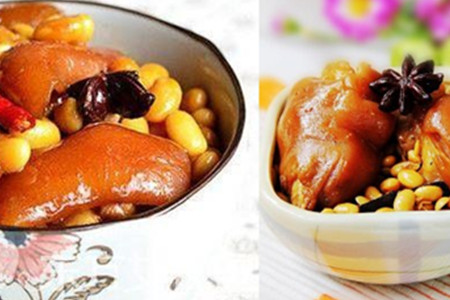 猪蹄含有胶原蛋白常吃能够美容养颜,即使吃的再多也不会胖。猪蹄的做法有很多种,接下来小编要带给大家的是猪蹄炖黄豆的做法。首先我们要准备的原材料有猪蹄,在选择猪蹄的时候尽量选择猪的前蹄。黄豆适量、冰糖、料酒、油、老抽。首先我们将猪蹄用火烧一下,然后再清洗干净。用火烧过的猪蹄味道会更好,而且也不会有任何的异味和猪毛。
