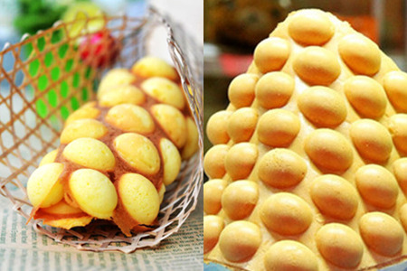 鸡蛋仔实际上就是华夫饼的一种变形,华夫饼表便是一个正正方方的小坑,而鸡蛋仔上面是一个个圆柱的凸起。鸡蛋仔的制作很简单,就是将蛋液、面粉、白砂糖混合之后倒入鸡蛋仔模子里面,上火烤就可以了。