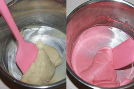 五、将您喜欢的颜色色素放入杏仁粉糊中搅拌均匀。