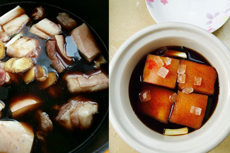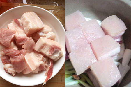 接着,我们需要在锅中倒入适量的水,然后将腌制好的五花肉放入锅中焯一遍。这样做不仅可以缩短煮制的时间,同时还可以使肉变得更加紧致。接着,我们需要将焯好的肉切成方块状,同时在砂锅里面加入葱姜蒜和一些香料等调味品,并将五花肉码在锅中,一定要记得要将肉皮朝下。