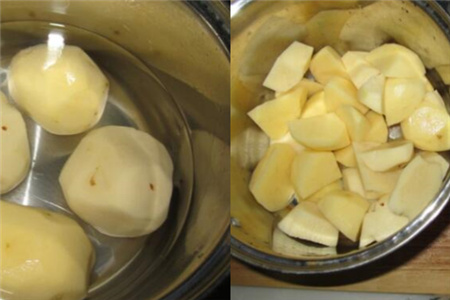 将马铃薯和胡萝卜洗干净去除表皮,马铃薯一定去除芽眼(土豆芽眼中含有龙葵素,龙葵素有毒对人体有害)。这里教给大家一个小常识土豆一定不能挑选发芽颜色变绿的,因为这样的土豆都含有大量的毒素。