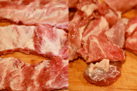 第一步:准备食材。主要食材是排骨500克,水果椒一个,胡萝卜一根,辅修食材是白糖100克,醋一瓶,油,盐,鸡粉,生粉。