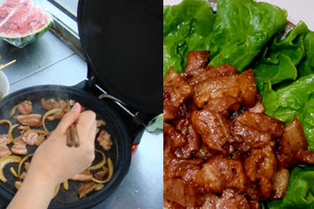 待肉腌制好之后,我们便可以用电饼铛来烤。我们需要在里面涂上适量的油,这样可以防止它粘锅,同时也会使肉吃起来更香。接下来,我们需要将腌好的肉放在上面烤,同时我们也可以加上一些洋葱,这样不容易使它烤糊。接着,我们需要用筷子将它翻面,这样可以缩短它的烤制时间。