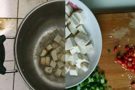 麻婆豆腐主要的味道就是麻辣的效果,所以在做麻婆豆腐之前准备好麻椒和辣椒沫才行。把豆腐切成很小的块状,放在盘子里面。这里告诉大家一个小的窍门豆腐出的水不要倒掉,在炒的时候可以放到锅里面会非常的嫩。