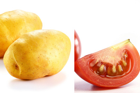 第二步,把食材都清洗干净。把土豆和番茄的外皮去除掉,番茄切成块状待用,并把土豆切成片状放入水中浸泡,以免土豆的表面变成黑色。