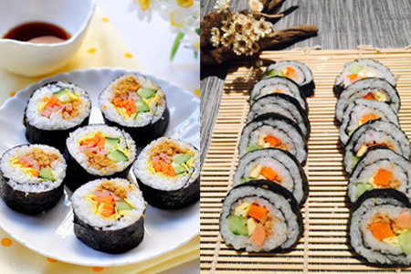 以上就是寿司的一般做法,新手一开始做的时候并不是很容易做,有的时候不是米饭太生硬了就是寿司卷不起来,如果有这样的疑惑一定要多尝试几次,只有在不断的尝试中才能做成更好的寿司。