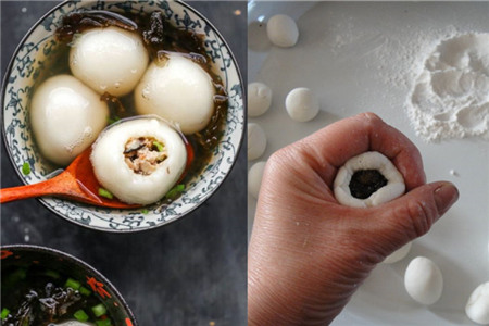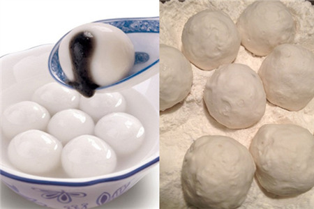 南方的汤圆则是包出来的,包汤圆的过程和包饺子有点类似。首先要将糯米粉和水变成面团,“醒”几个小时之后就可以用来包汤圆了。直接用手揪一撮面团,双手挤压成圆片状,然后挑一点馅料放在圆片中间,再转边进行收口。是不是和元宵的做法大不一样呢?