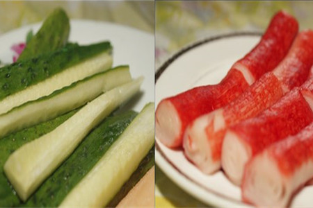 因为制作方法不同,需要的菜料大小、形状也不尽相同,因此,菜料加工过程中的处理方法也存在差异,用于制作细卷、太卷的食材一般加工成长条状,而用于制作军舰卷的食材一般加工成颗粒状。常用的菜料有青瓜、腌萝卜、蟹柳、玉米、三文鱼、蟹籽、海草等。因为菜料中的海鲜都是生吃的,选购时要注意是否足够新鲜、干净卫生。