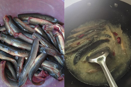 三、架锅热油,爆香葱姜蒜。放入处理好的泥鳅,将泥鳅炒到颜色焦黄,一定炸透,否则后期和豆腐同煮肉质不烂。