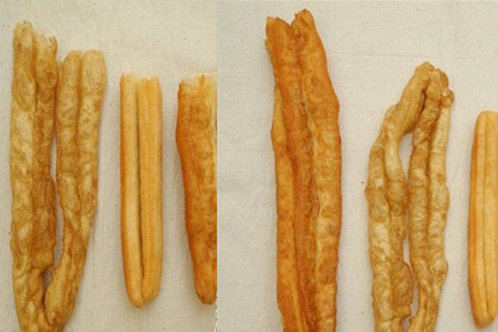 第一个:有些早餐店看起来非常好看的油条就是这种,虽然油可能用的是干净油,但是非常的膨胀,颜色也不错。肯定是用了明矾的。因为只有明矾才能让小油条膨胀这么大。第二种:这种就要非常非常小心了,建议大家不要吃,颜色较其他两种明显发白,说油可能用的是问题油,比如大家谈之色变的地沟油。