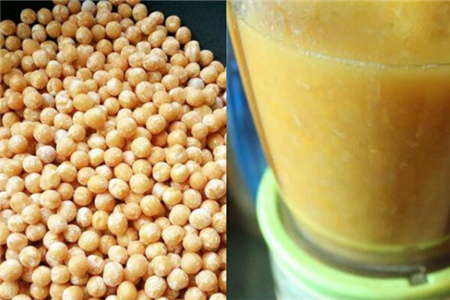 将豌豆放入锅中加入适量的清水,开火闷煮10分钟左右,等豌豆变得酥烂即可。将煮好的豌豆放入料理机内磨成细沙。