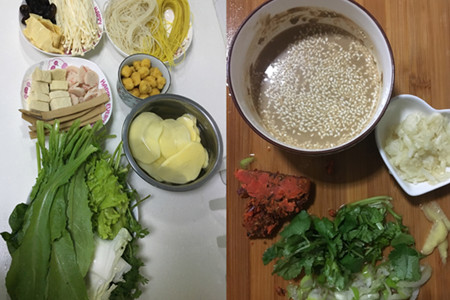 首先我们要准备充足的菜肴,可以全是蔬菜,也可以包含肉类,比如说:土豆片、粉条,莴苣、生菜、香菇、木耳、豆皮、牛肉、蟹棒、藕片、香肠等。然后开始准备汤底以及佐料:火锅底料、八角、干辣椒、花椒、葱姜蒜、油、盐、醋、酱油、辣椒油、鸡精等。接着开始制作:1、向锅中倒入适量的油,等到油温到达一定高度时,放入火锅底料、八角、干辣椒、花椒以及姜蒜爆炒。等到香味溢出来时,干锅中倒入适量的清水烧开。2、将准备的菜肴放入锅中,秉着肉类先放、菜类后放的原则,然后盖上锅盖中火煮开。3、等到锅里的菜肴到8分熟时,放入佐料搅拌,等一分钟捞起即可。