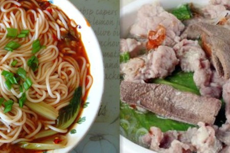 在南方地区以潮汕汤米粉为特色,那里的人们喜欢以大骨头汤做为底料。经过6个小时的熬煮之后再加入瘦猪肉、猪杂、肉丸之类的肉类作为辅料,再将面条一起煮,一碗美味的汤粉就诞生了。而北方的面条主要以陕西一带为名,例如臊子面。将肉末、蒜蓉、秘制酱料等材料进行煎煮,调制出浓稠的酱汁出来后,淋在面条上,一份香喷喷的面条就出锅了。