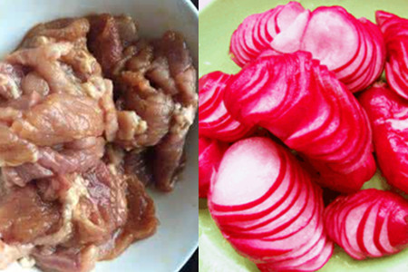 樱桃萝卜炒肉片。